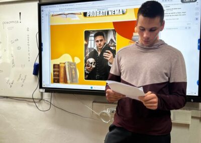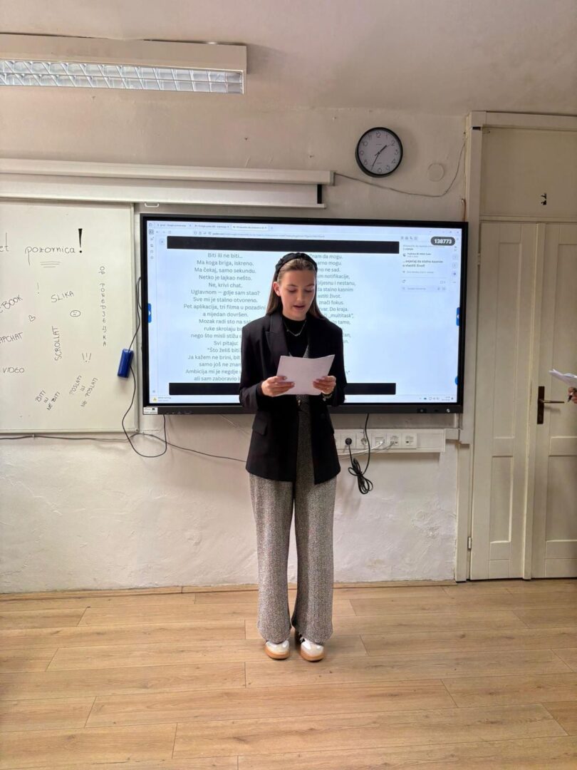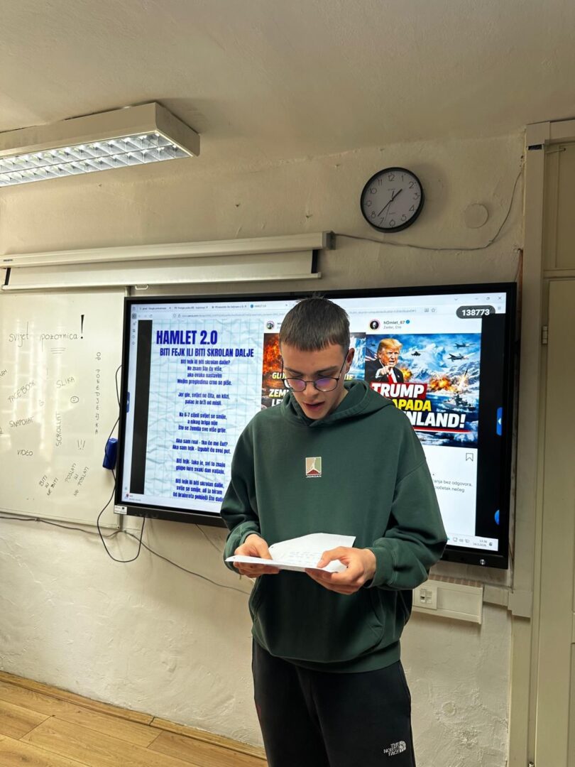 Inspirirani tek pročitanom lektirom, tragedijom Hamlet, učenici su istraživali kako se teme ljubavi, izdaje, boli i identiteta mogu prenijeti u današnji, mrežni svijet. Njihove suvremene interpretacije pokazale su da klasici ne stare. Oni se samo mijenjaju i prilagođavaju novim generacijama. Ažuriraju se.