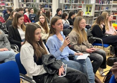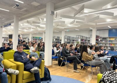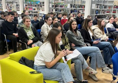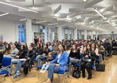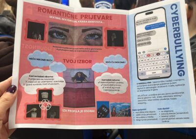 Učenici svih drugih razreda i 1. d razreda, vođeni školskom knjižničarkom i uz snažnu podršku svojih nastavnika, udružili su znanja i iskustva s partnerima iz lokalne zajednice kako bi zajednički promišljali o sigurnosti na internetu. Poseban naglasak bio je na prepoznavanju i pravilnom reagiranju na različite oblike kibernetičkog kriminaliteta, online prijevara i odgovornom korištenju društvenih mreža i umjetne inteligencije.