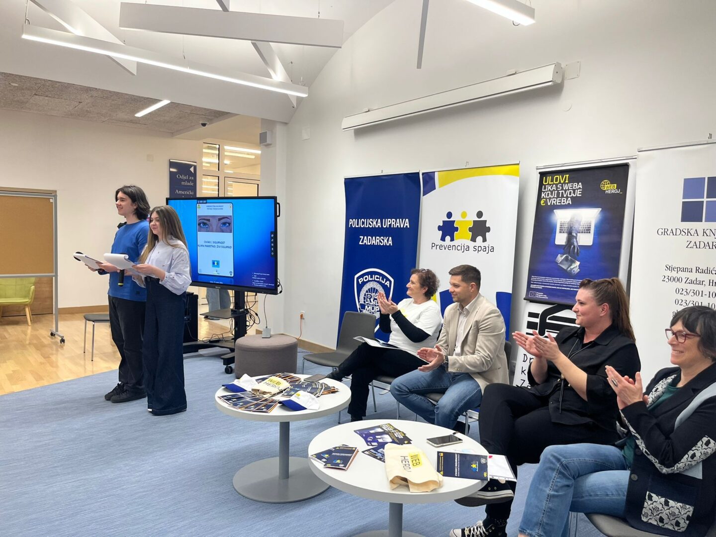 Policijska službenica za poslove prevencije mr. sc. Ivana Marić i policijski službenik Sando Miloševski predstavili su nacionalnu preventivnu kampanju MUP-a ”Web heroj”, upozorili na sve češće oblike prijevara (online kupnja, romantične prijevare, krađa identiteta…) te podijelili konkretne savjete za sigurnije ponašanje u virtualnom okruženju.